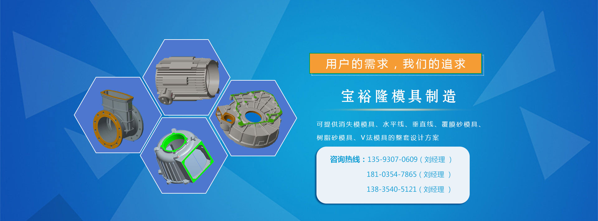 山西寶裕隆模具制造有限公司,創(chuàng)于1998年,位于山西省晉中市平遙縣南政鄉(xiāng)里村,是一家從事消失模、垂直線(xiàn)、覆膜砂、水平線(xiàn)、樹(shù)脂砂等鑄造模具企業(yè)。我們對(duì)于公司各部門(mén)人員嚴(yán)格要求:要求認(rèn)真。我公司將產(chǎn)品質(zhì)量及工作效率放在前面,以可持續(xù)發(fā)展為宗旨......